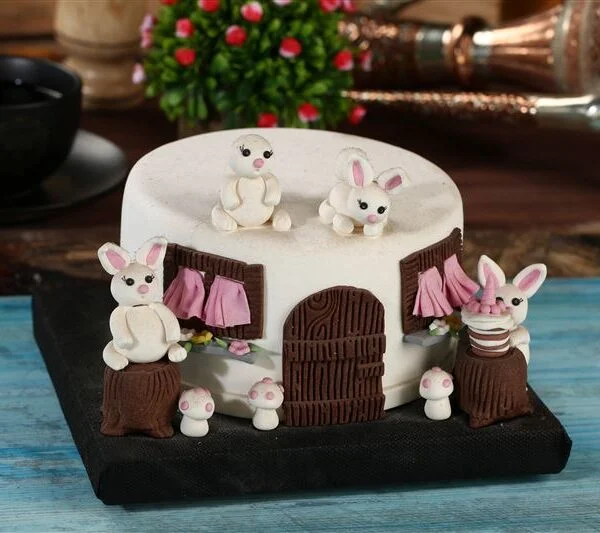 Tavşancıklar Tasarım Şeker Hamurlu Pasta ( 8-10 Kişilik)