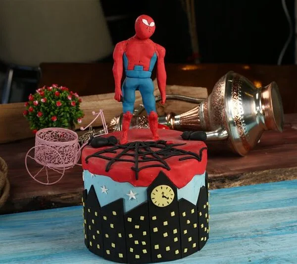 Spiderman Tasarım Şeker Hamurlu Pasta ( 8-10 Kişilik)